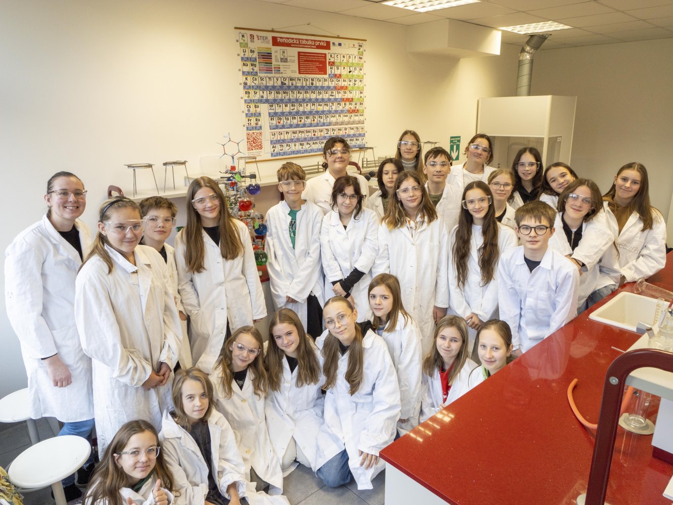 V průběhu hodiny si žáci vyzkoušeli dva zajímavé pokusy. Nejprve vytvořili lávovou lampu, kde díky rozdílné hustotě látek vznikal fascinující pohyb barevných kapiček. Poté přišla na řadu „sloní zubní pasta“ – dramatická reakce peroxidu vodíku s jodem, při které vzniklo obrovské množství pěny.