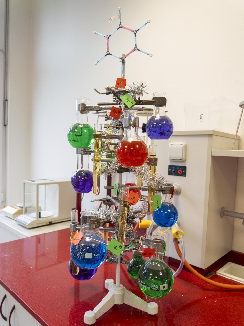 Dnešní laboratorní cvičení žákům 2.O zpříjemnilo adventní čas a přineslo nejen nové poznatky, ale i spoustu zábavy. Vánoční atmosféru umocňoval chemický stromeček, který už byl ozdoben zkumavkami a baňkami s pestrobarevnými roztoky.