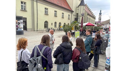 Kromě práce na magazínu jsme měli také příležitost poznat samotné město Deggendorf. Absolvovali jsme prohlídku radnice, kde jsme se dozvěděli více o historii i současném fungování města. Velkým zážitkem bylo i setkání s takzvanou „Vrhačkou knedlíků“.
