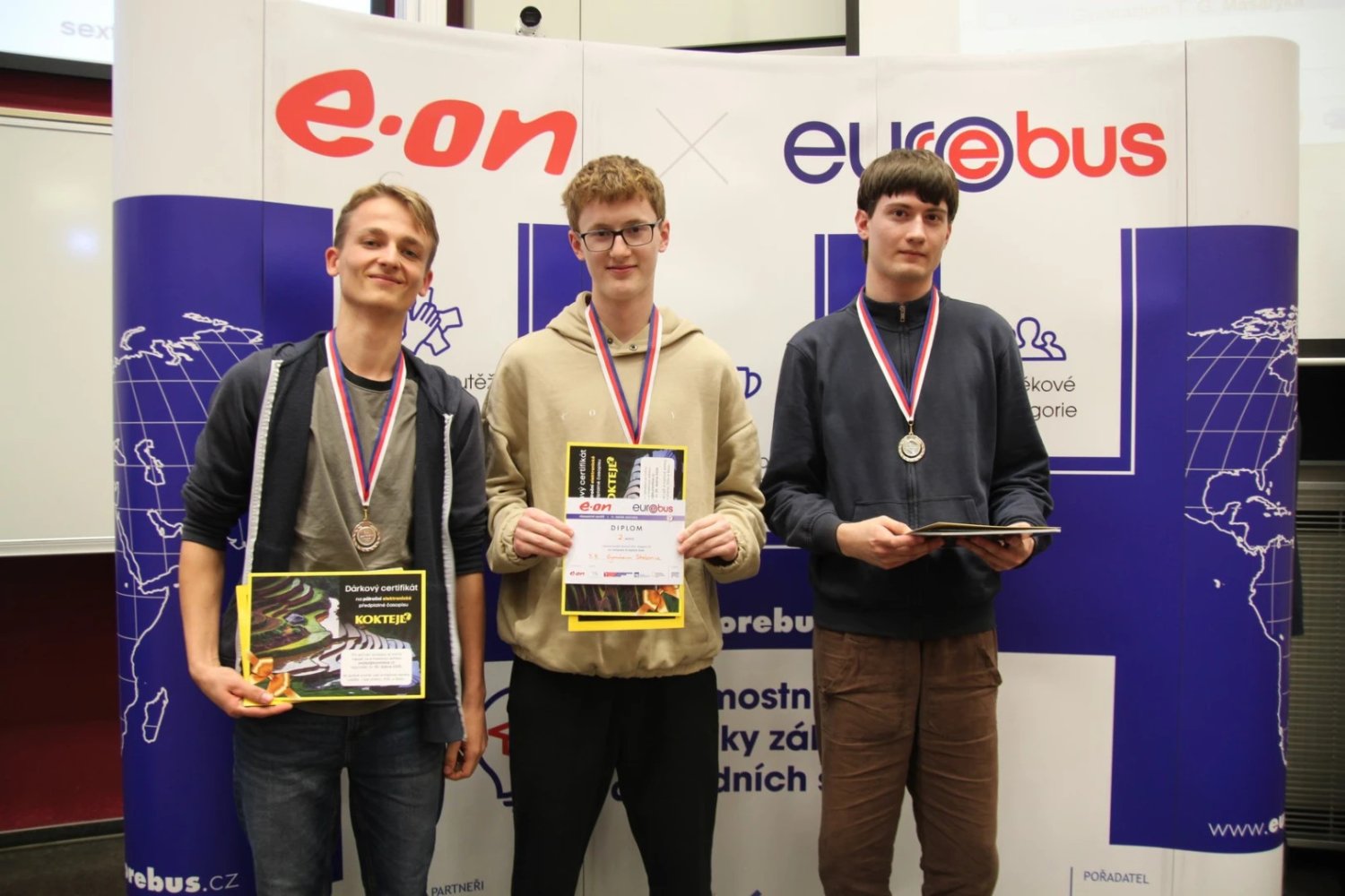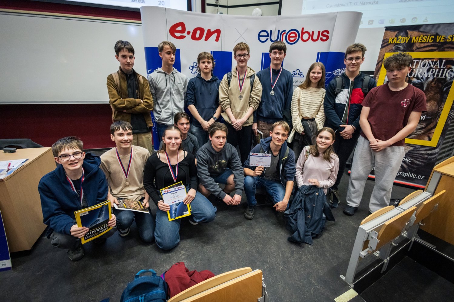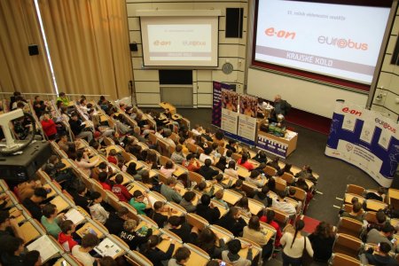 V sobotu 18. dubna jsme vyrazili autobusem do Prahy, abychom se zúčastnili krajského kola soutěže Eurorebus. Již 31. ročník této soutěže se konal na Elektrotechnické fakultě ČVUT. Do krajského kola se probojovaly třídy tercie, 1. A, 1.B, kvinta, 2.A a 3.B. Díky paní učitelce Jirsové jsme byli dobře připraveni a těšili jsme se na soutěž.