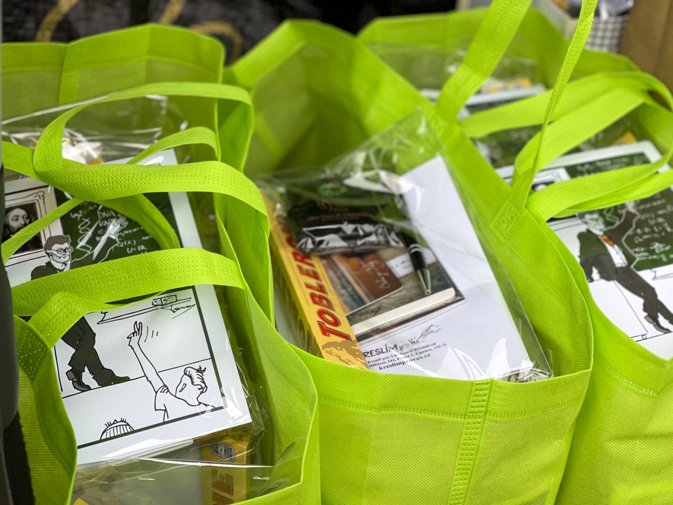 Paní Martina Šambazova nám za místní Apoštolskou církev MANA přinesla tři tašky (ve vlajkové barvě gymnázia) s balíčky pro úplně všechny současné vyučující gymnázia, kteří už přes rok zápolí s distanční výukou. Byli a jsme si velice dobře vědomi všech problémů, které "online" či "offline" výuku provází. Snažíme se na nich pracovat. Ale distanční výuka těžko bude ideální, nikdy nenahradí poctivou školu, sociální a pedagogický kontakt, lavice ve třídách a vše, co má přirozeně vzdělávání provázet! O to více nás dojaly ty tři tašky balíčků, které nechtějí vyjádřit nic "obyčejnějšího" než poděkování, podporu i naději, že to nebude trvat věčně! Originální přání, brožurka o J. A. Komenském (Den učitelů se blíží), magnetky, čaj, propiska a čokoláda k zaobalení našich chřadnoucích nervových vláken...