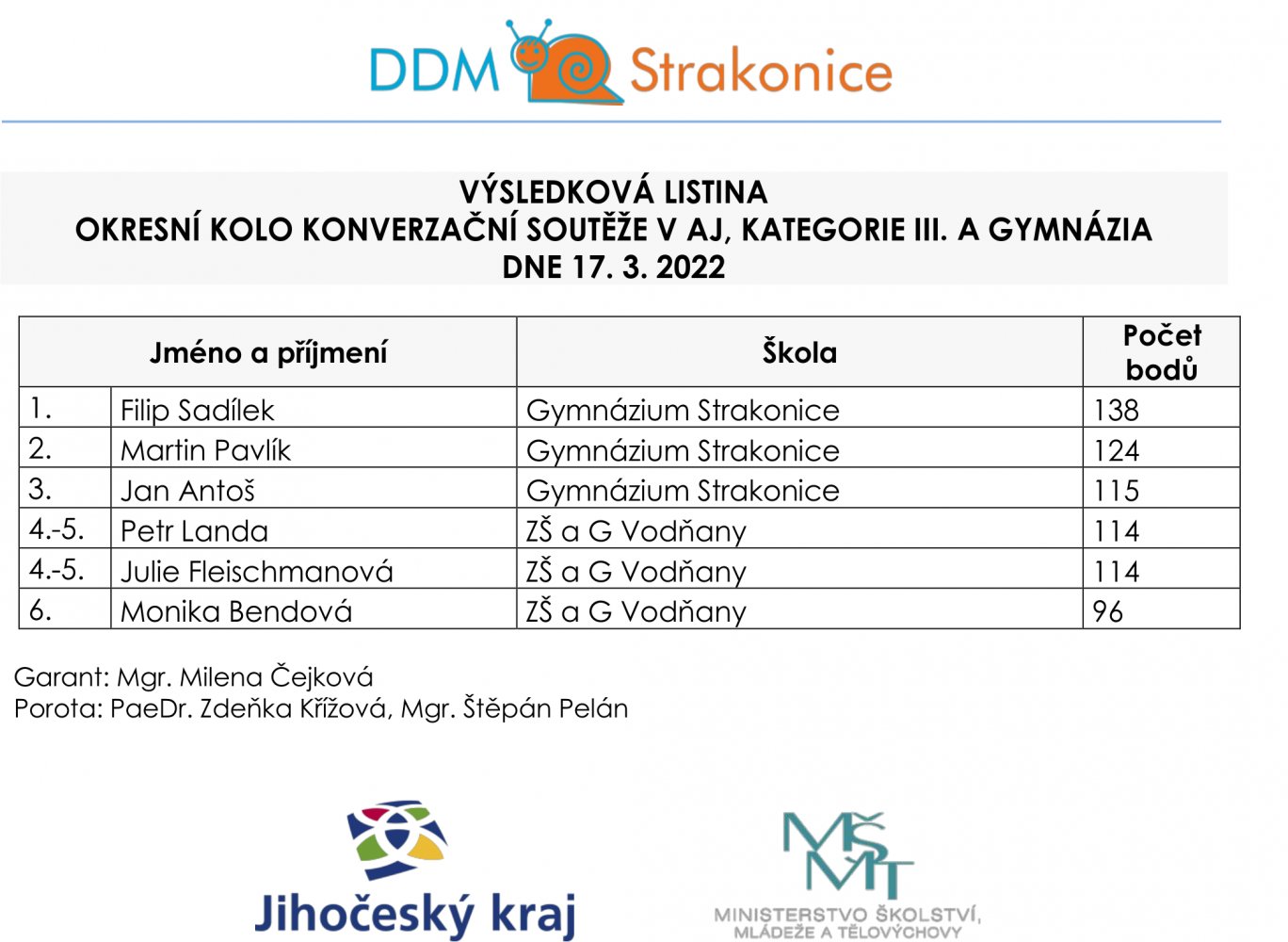 Žákyně a žáci naší školy se úspěšně zapojili do okresního kola konverzační soutěže v anglickém jazyce.