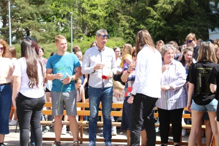 S končícím měsícem dubnem skončila také výuka čtvrtých ročníků a oktávy. Závěrečnou tečkou pak bylo tradiční "poslední zvonění", kdy žáci posledních ročníků předali štafetu svým nástupcům z ročníků třetích a septimy.