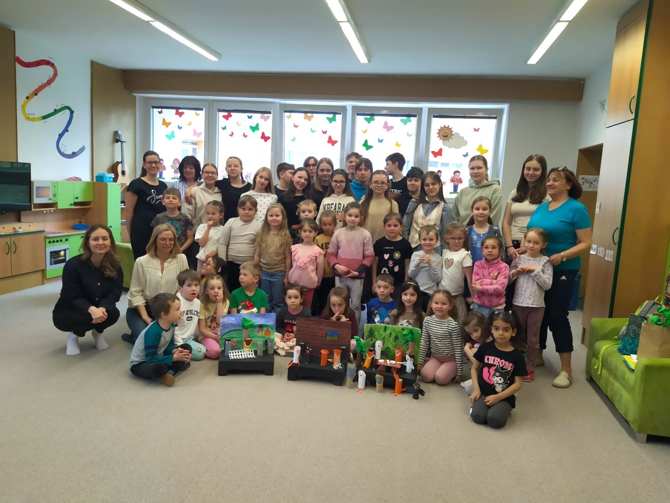 Návštěvu jsme si všichni moc užili a zakončili jsme ji společným focením. Děti byly moc šikovné a určitě je mezi nimi i pár budoucích gympláků!