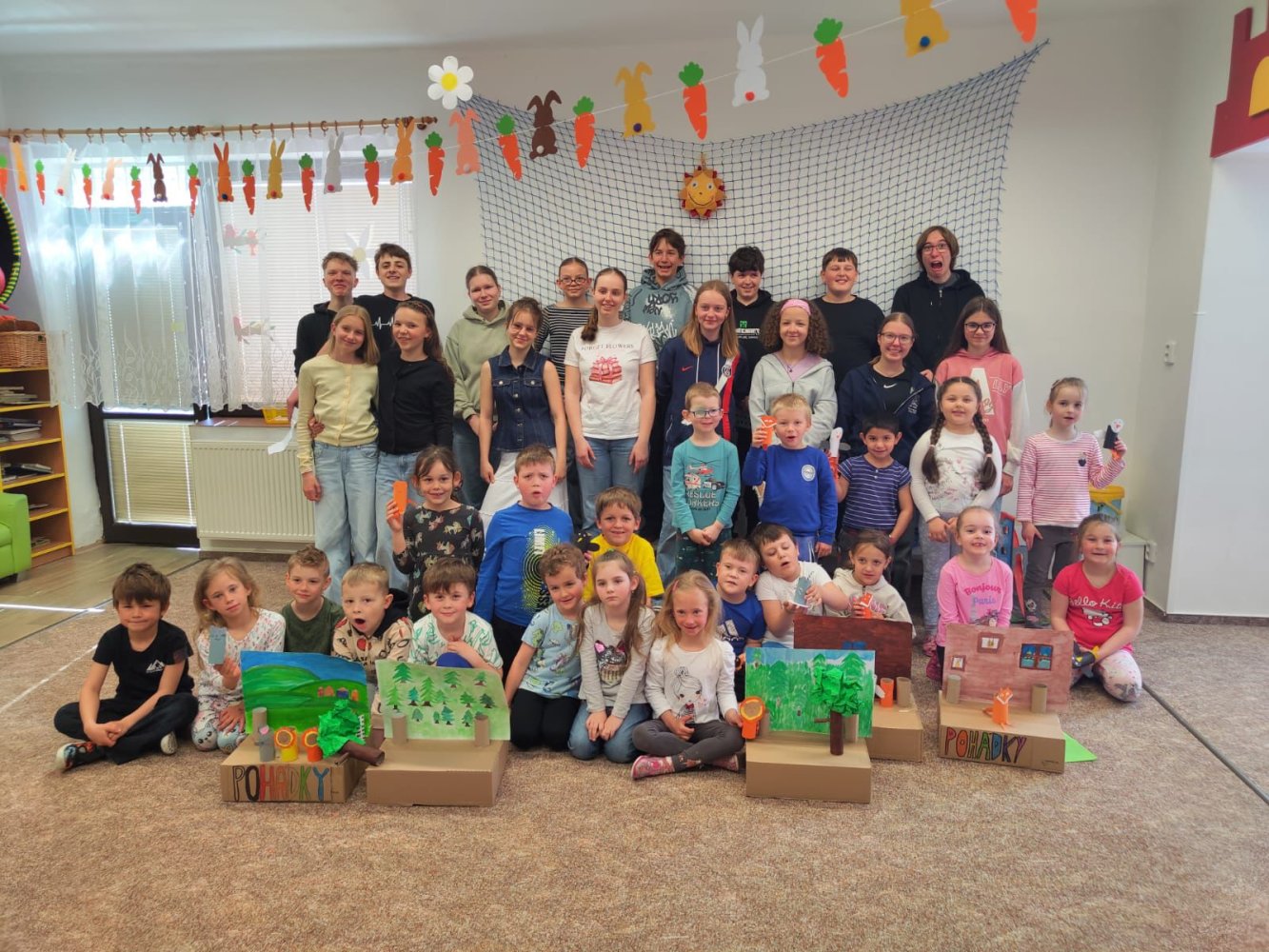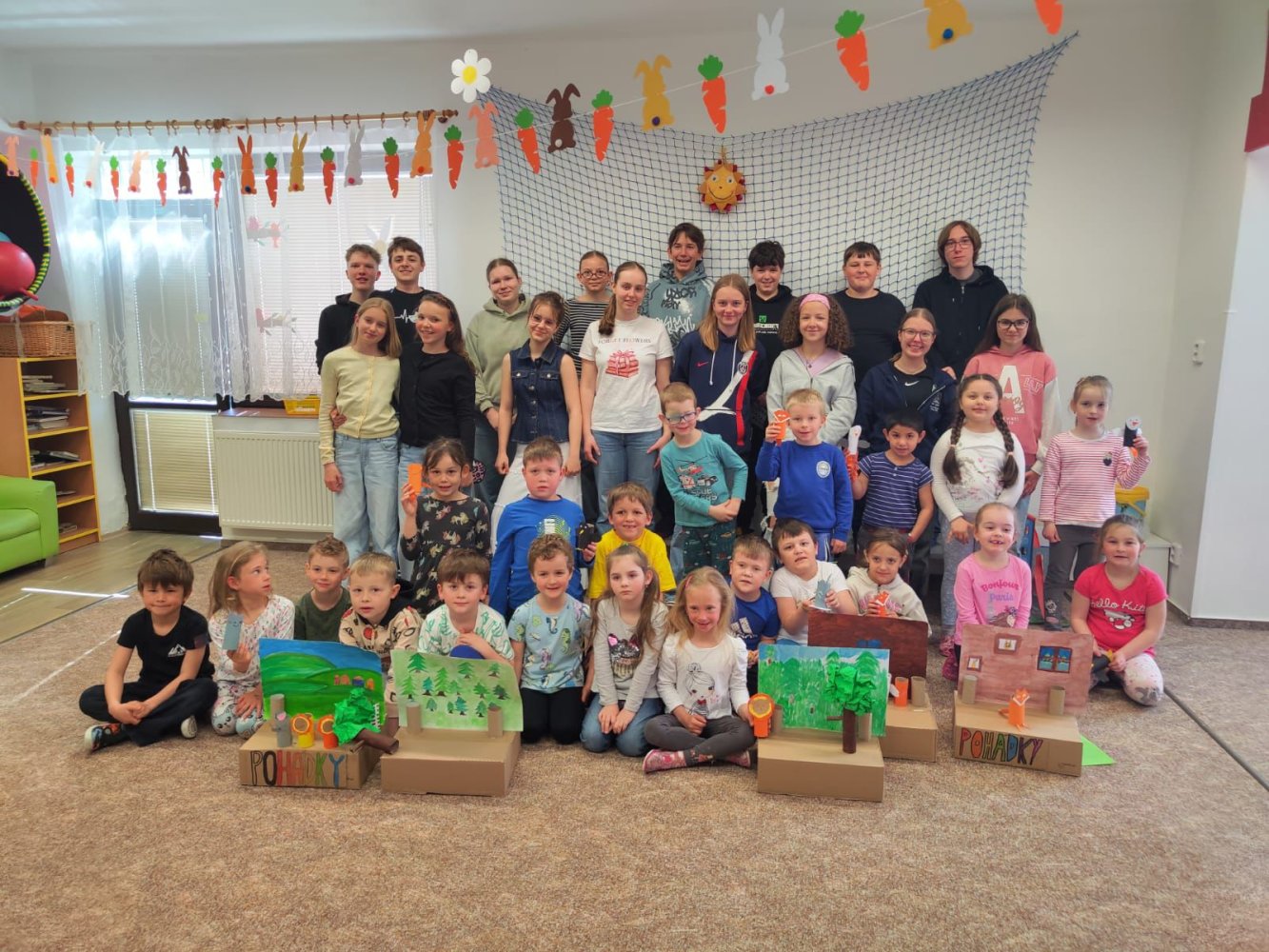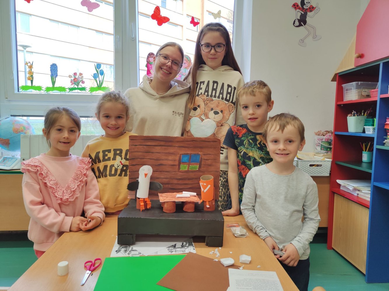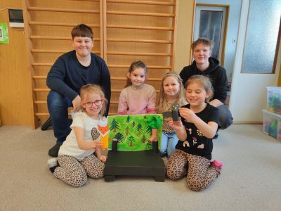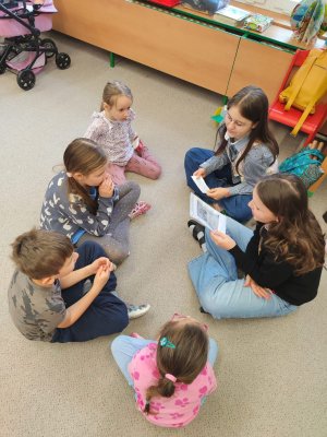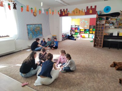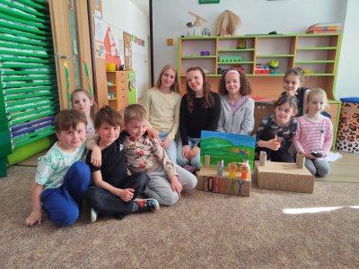 V pondělí 30.3. jsme šli číst předškolákům bajky do MŠ Šumavská. Děti nás krásně přivítaly a dokonce nám připravily i malé občerstvení. Rozdělili jsme se do skupin, v nichž jsme dětem četli připravené bajky, které jsme následně pomocí vyrobených postaviček společně dramatizovali.