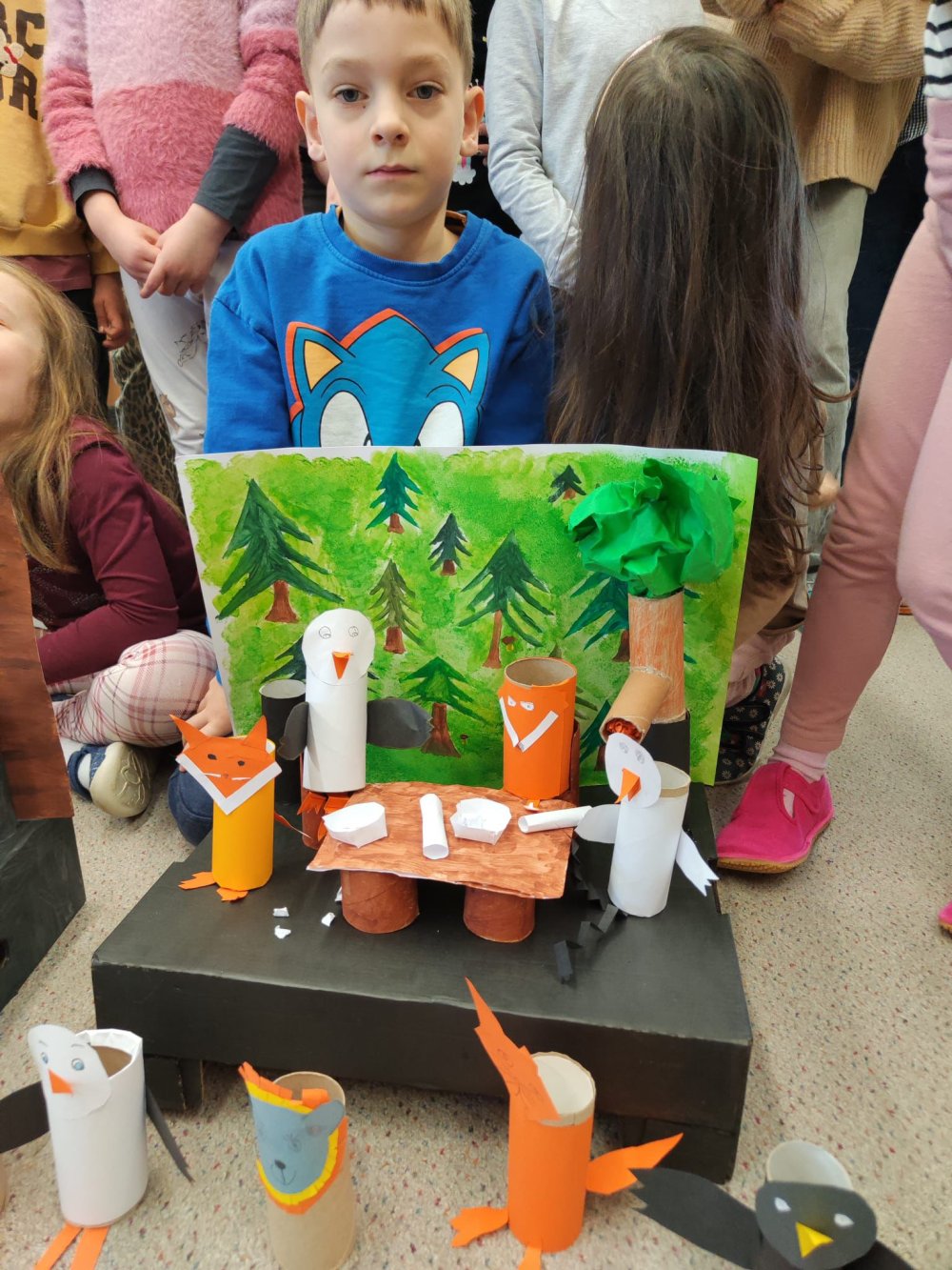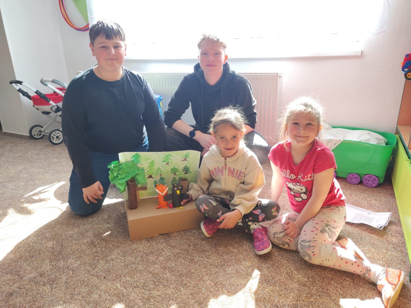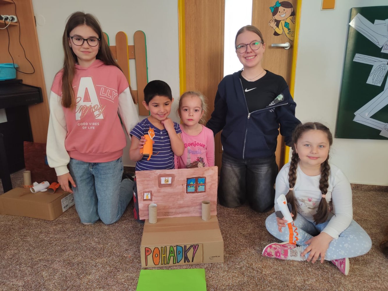 V pondělí 30.3. jsme šli číst předškolákům bajky do MŠ Šumavská. Děti nás krásně přivítaly a dokonce nám připravily i malé občerstvení. Rozdělili jsme se do skupin, v nichž jsme dětem četli připravené bajky, které jsme následně pomocí vyrobených postaviček společně dramatizovali.