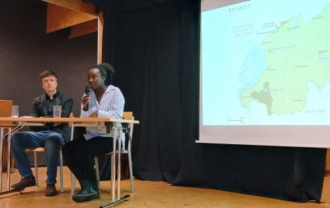 „Dozvěděli jsme se spoustu zajímavých, ale zároveň velmi smutných informací o tom, jak konflikt mezi kmeny Hutu a Tutsi postupně vyústil až do tragických událostí v roce 1994. Největší dojem na nás ale udělalo to, že nám vše vyprávěla přímo žena z kmene Tutsi, která si tuto dobu sama prožila. Mluvila o svých vlastních zkušenostech, o strachu o život, o ztrátě části rodiny i o tom, jak těžké bylo po genocidě znovu najít sílu pokračovat dál. Díky jejímu osobnímu svědectví jsme si mnohem více uvědomili, že nejde jen o historickou událost z učebnice, ale o skutečné lidské osudy.“ Karolína Baťková (3.C)