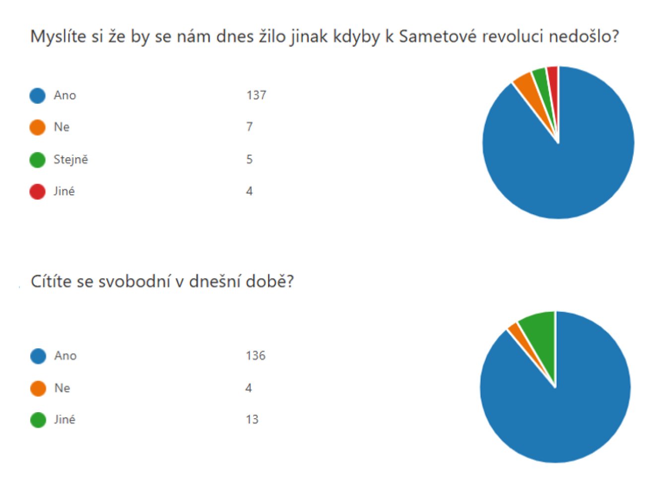 Za vyučující bych rád poděkoval pořadatelům, kteří v krátkém čase připravili v Komunitku velmi pěkný program. Stejně tak hostům - kolegům a dokumentaristovi muzea Mgr. Robertu Malotovi, který kromě účasti v besedě zapůjčil také velmi podrobnou a zajímavou výstavu muzea k tématu sametové revoluce ve Strakonicích. Studentský parlament také rozeslal anketu, která nám poskytla cenný obraz o tom, jak současné generace o sametové revoluci i současných podobách demokracie a svobody uvažují. Můžete se podívat na graficky zpracované vybrané výsledky jejich studentského průzkumu.