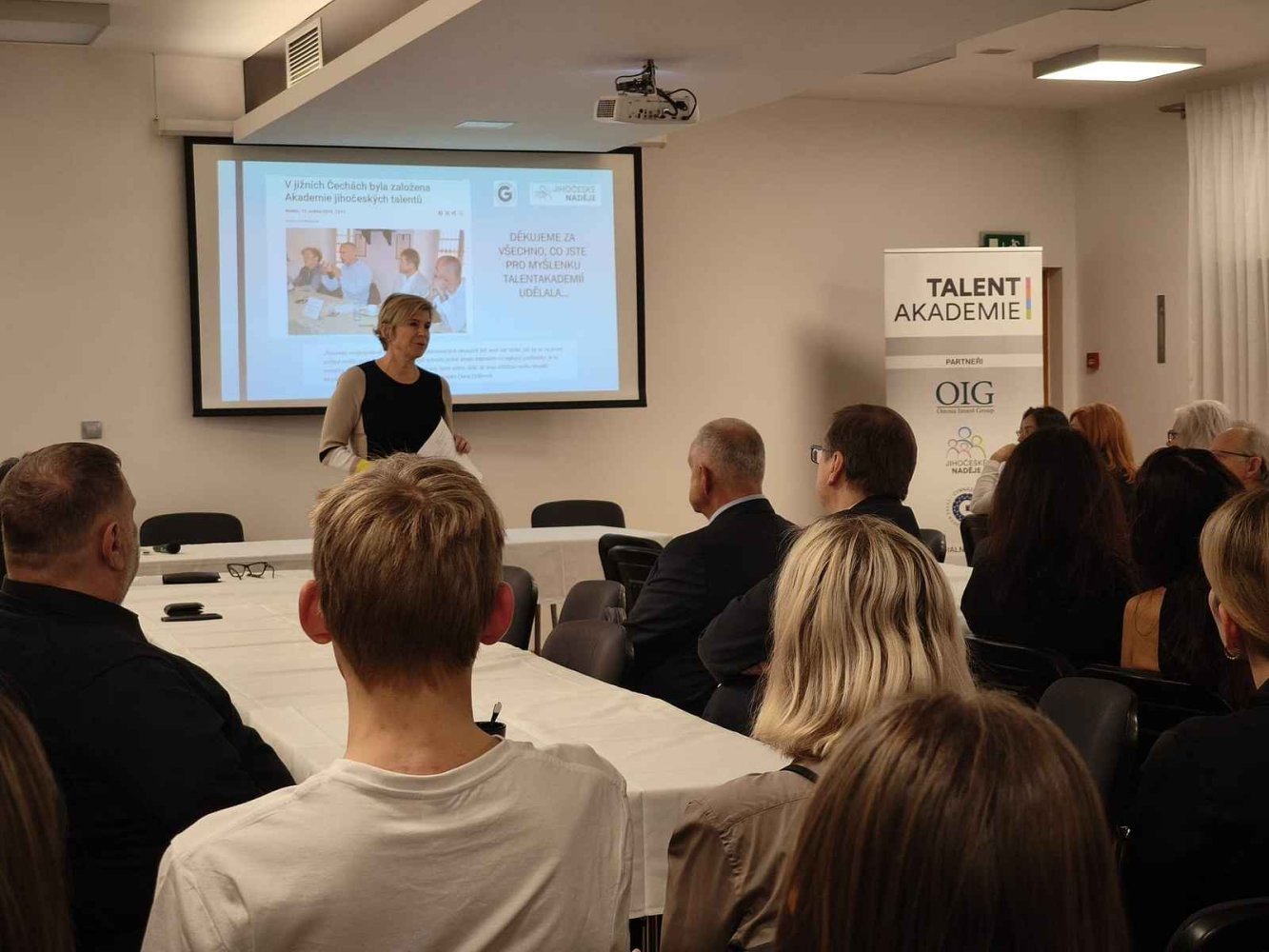 Letošního podzimu získali dva naši mimořádní studenti třetího ročníku nominaci na již známou "TalentAkademii" Jihočeského kraje, organizovanou Fondem jihočeských nadějí. Letošní ročník byl zaměřený na lékařství a dvojice našich studentů se mohla intenzivně věnovat nejrůznějším oblastem biologie člověka a medicíny. Sami popisují svůj zážitek takto: