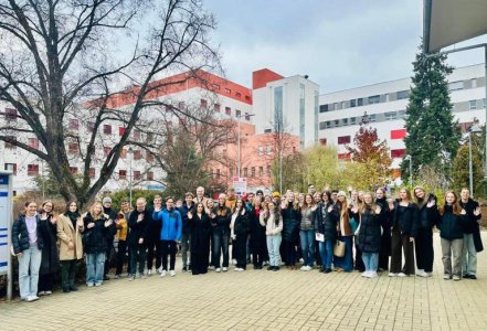 "V pátek po první přednášce o mamologii jsme odjeli do Jindřichova Hradce, kde jsme navštívili několik oddělení nemocnice. Nejvíc mě zaujala gastroenterologie, kterou nás provedl pan doktor Peterka. Večer následovalo slavnostní zahájení s hejtmanem a výtečný raut.