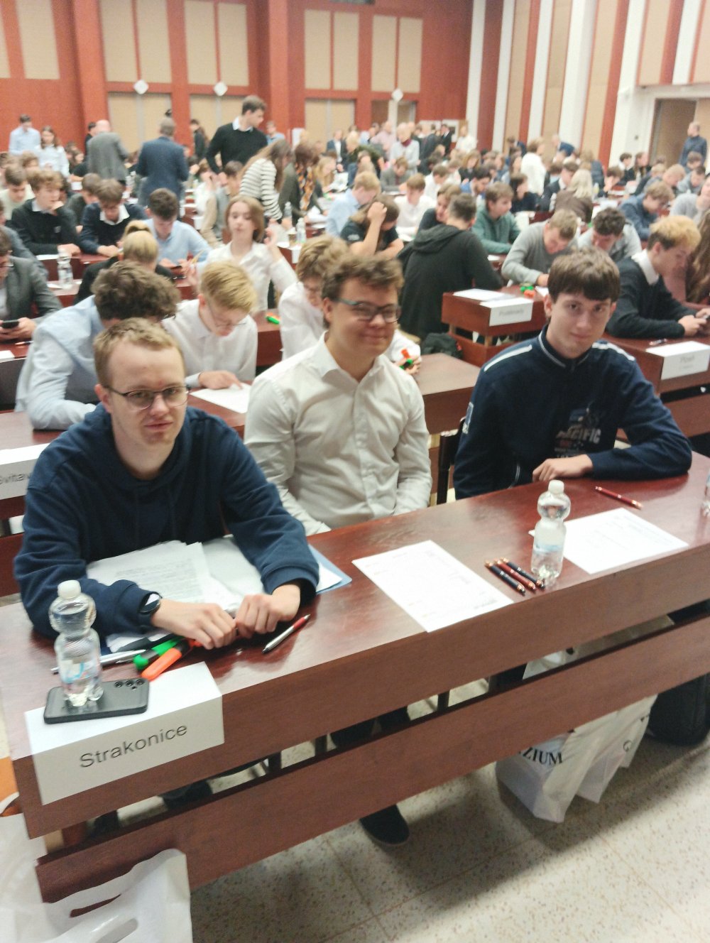 Postup z prvního místa v krajském kole byl opět vstupenkou do finálového střetu s dalšími kvalifikanty ČR a SR v Chebu. Letos byl termín stanoven na 20. listopad a náš tým se opět skládal z osvědčených jmen: Filip Poisl z 3. B, Adam Kozák z 4. B a Marek Poulíček z 3. C. Téma bylo nesmírně obsažné, neboť se jednalo o významné mimoevropské události celého XX. století včetně politiky, sportu, kultury a vědy. Každoročně se o finále pokouší kolem 300 gymnázií obou republik, konkurence je rok od roku připravenější, a bodové rozdíly jsou tudíž stále menší. Po loňském 6. místě jsme si polepšili a naši reprezentanti získali bronzové medaile. Děkujeme klukům za zodpovědnou dlouhodobou přípravu, za čas věnovaný studiu materiálů a za tak potřebnou obětavost a zápal pro dějepis.