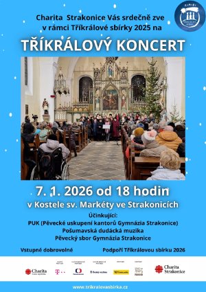 Přijměte pozvání na letošní Tříkrálový koncert ve středu 7. ledna od 18:00 v kostele sv. Markéty ve Strakonicích.
