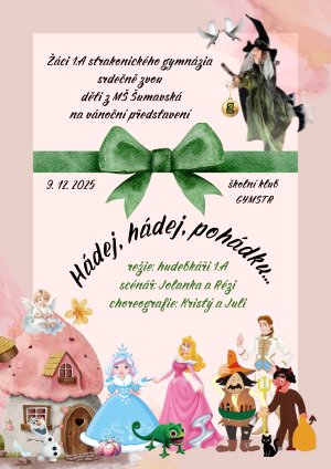 Žáci 1.A strakonického gymnázia srdečně zvou děti z MŠ Šumavská na vánoční představení 9.12.